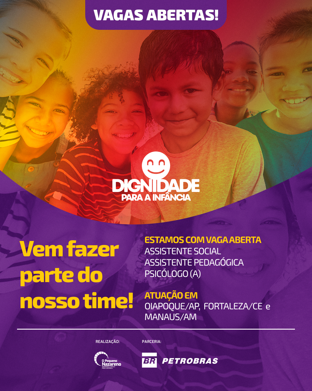 Nas ruas e nas comunidades do Norte e Nordeste, trabalhamos para proporcionar dignidade para a infância, oportunidades para os jovens e apoio para as famílias de crianças e adolescentes em situação de rua. Em parceria com a Sociedade Civil, entidades públicas e privadas, empresas de referência e redes internacionais de proteção, estamos comprometidos com o desenvolvimento comunitário e a mobilização social, para a defesa e garantia de direitos de crianças e adolescentes no Brasil e no mundo.